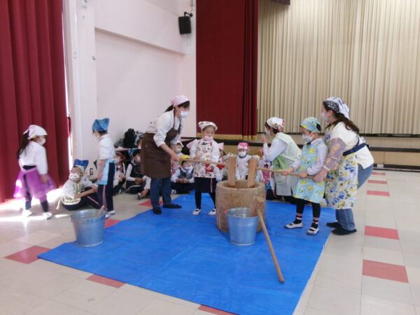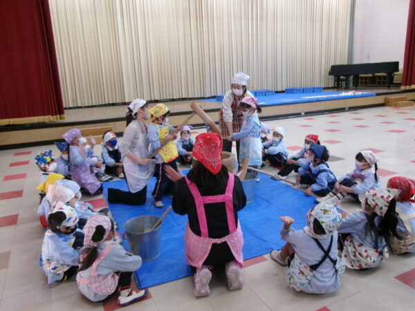 みんなに応援されながらぺったんぺったんお餅をつきました!