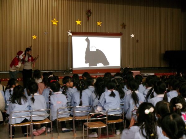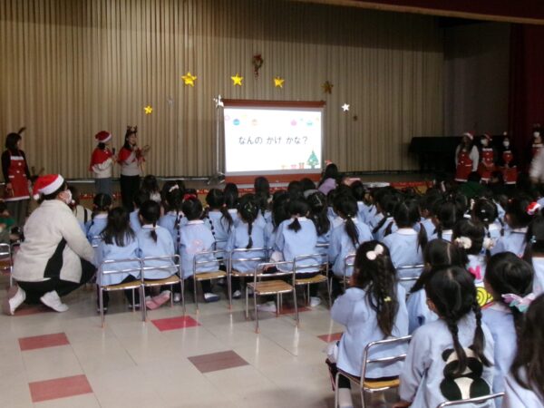 父母の会の役員さんがシルエットクイズやサンタさんの福笑いをしてくれて大盛り上がり♪