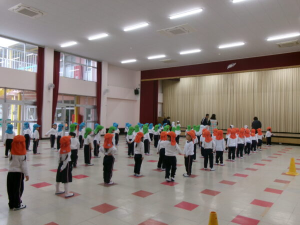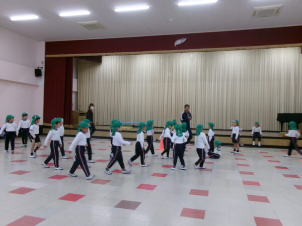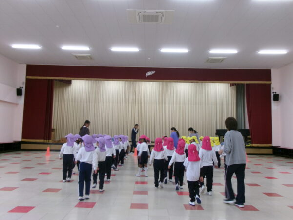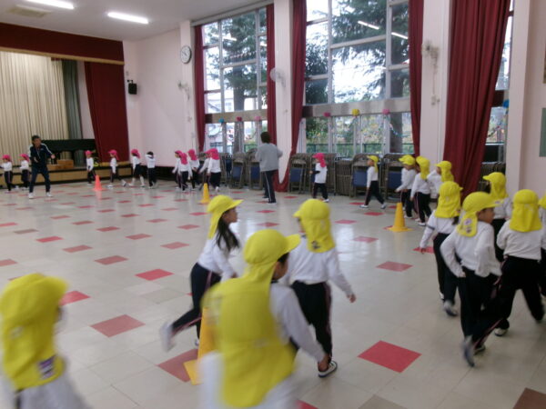 雨が降っていたのでホールの中でしたがみんな元気いっぱい走りました(^^)