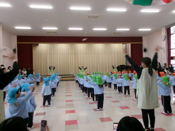今年度最後の保育参観がありました。 年少組はホールに集まり、朝の会やしまじろう体操、親子で手遊びなどをしました(^^)/ 一年間の成長を保護者の方に見ていただくことができて嬉しく思います!ご参加ありがとうございました。