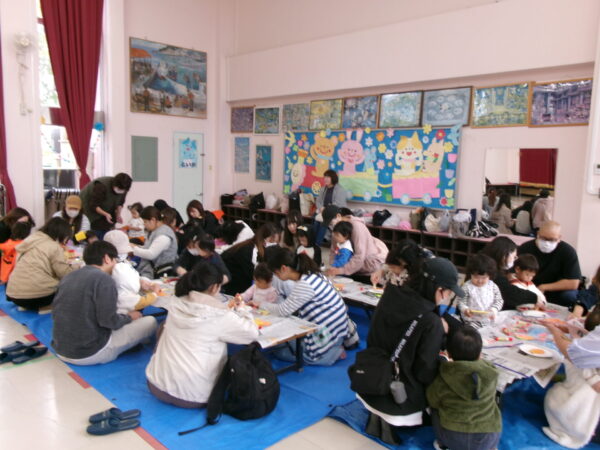 その後は、おばけ運びゲームやハロウィンバッグの製作、大型絵本を見て楽しく過ごしました(^^)